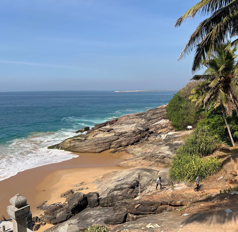 🌴 Kovalam – Plages et cocotier ainsi que la visite du Temple Sri Padmanbhapuram à Trivandrum.